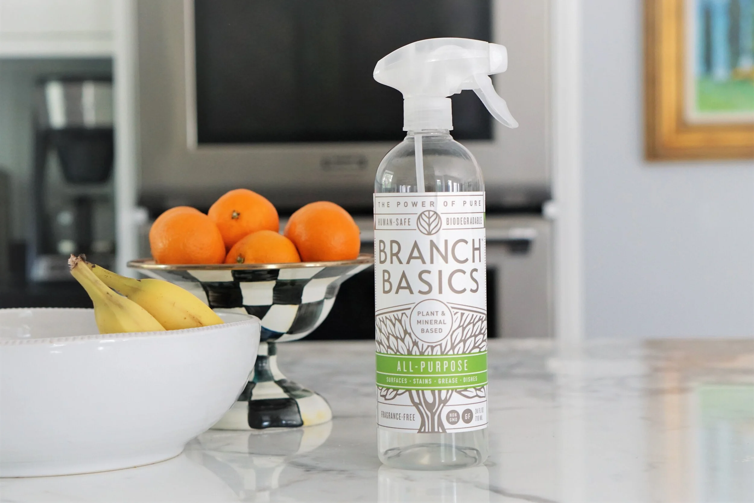 Non-toxic and fragrance free, Branch Basics All Purpose is an effective cleaner that is safe to use on all surfaces from kitchen countertops to clothing.
